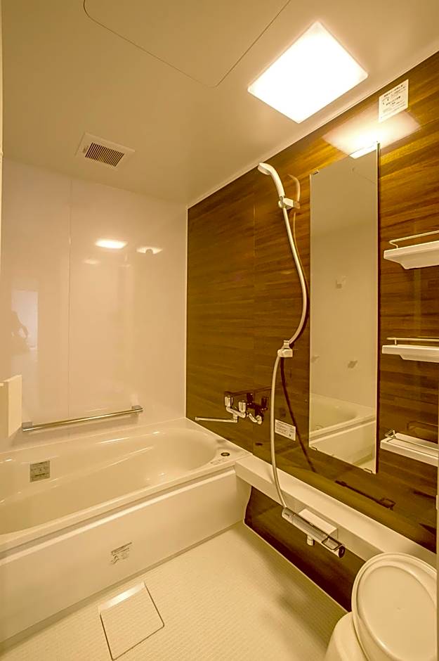 This apartment has a fully equipped kitchen, satellite flat-screen TV and massage chair. Features 2 small double beds (47 in wide). 1 double bed and 4 Japanese futon bedding are provided.